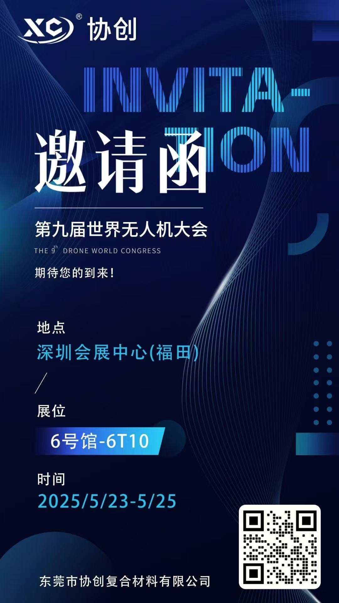全球無人機(jī)行業(yè)年度盛會——第九屆世界無人機(jī)大會將于2025年5月23日-25日在深圳會展中心(福田)盛大開幕!作為復(fù)合材料領(lǐng)域創(chuàng)新先鋒,東莞市協(xié)創(chuàng)復(fù)合材料有限公司誠邀您蒞臨6號館-6T10展位,共探輕量化材料與無人機(jī)融合的無限可能!